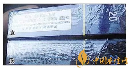 真煙壓邊準(zhǔn)確,印刷清晰;假煙燙金粗糙。