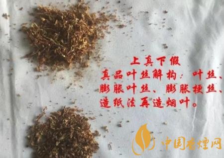 上真下假,正品香煙的煙絲干濕程度適當(dāng),不會出現(xiàn)漏油的情況,而且正品煙絲的色澤度偏金黃色一點,假冒的煙絲顏色則是暗黑一點。