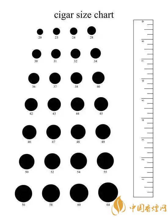 雪茄環(huán)徑,古巴當(dāng)?shù)靥囟ǖ恼f法是,用環(huán)徑(Ring gauge)表示雪茄頭部的直徑,1 環(huán)徑= 1/64 英寸,約合 0.04 cm=0.4 mm。