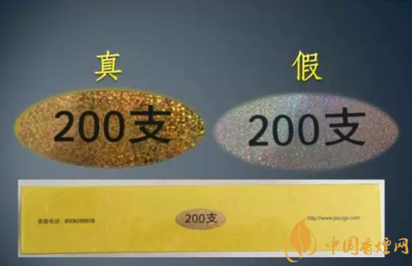 條盒側(cè)面的“200支”,真假卷煙采用不同材質(zhì)的素面鐳射電化鋁。