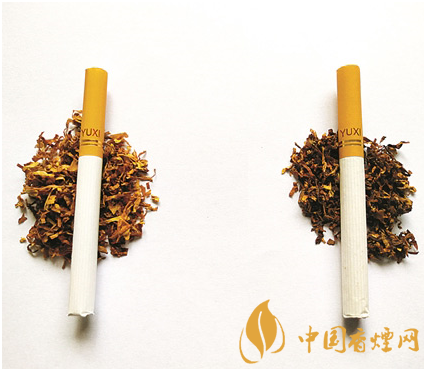 真煙煙支“YUXI”字母清晰明亮,卷煙紙凈白,煙絲光澤油黃。假煙煙支“YUXI”字母偏暗,卷煙紙泛黃,煙絲雜亂發(fā)黑。